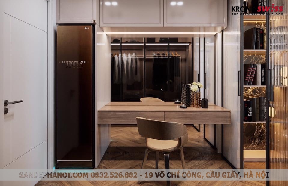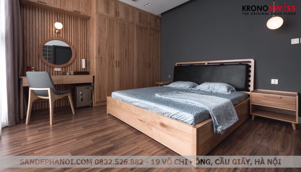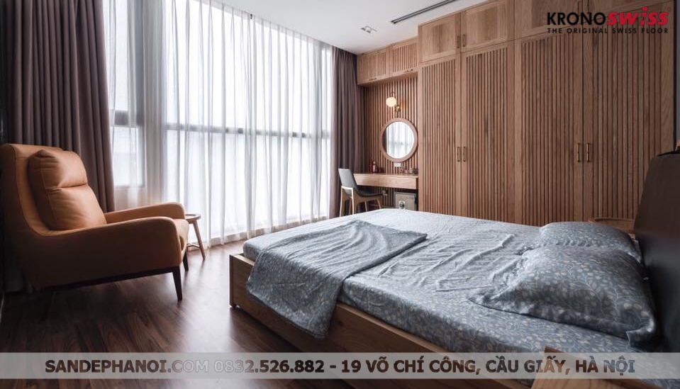 Một trong những công trình chúng tôi đã thi công tại Skylake Phạm Hùng sử dụng sàn gỗ kronoswiss D2266 rất hợp lý trong phân khúc cao cấp có tone óc chó rất thịnh hành