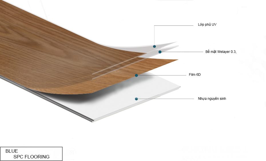 Cấu tạo sàn nhựa hèm khóa BLUE được mô tả chi tiết qua hình ảnh sau