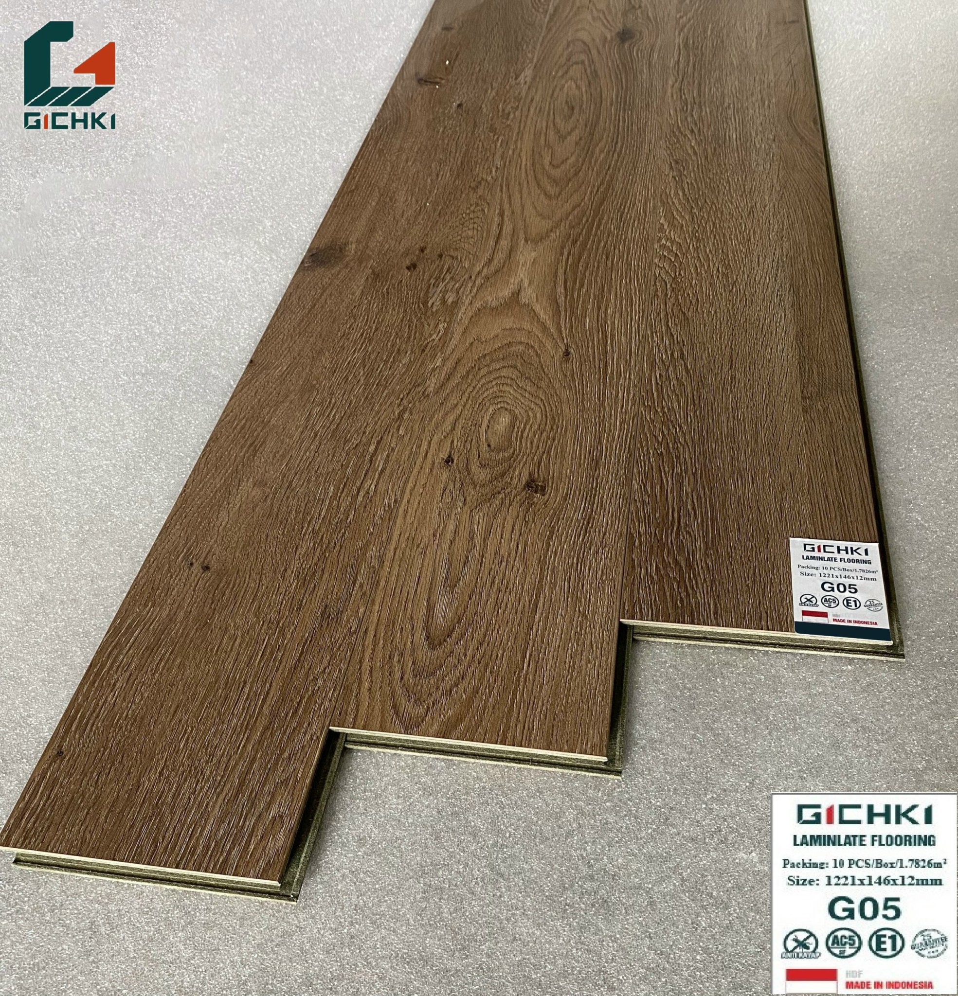 Sàn gỗ Richky cốt xanh thuộc dòng sản phẩm 12mm với cốt nhập khẩu từ Indonesia màu sắc đa dạng, đẹp như gỗ tự nhiên và phù hợp với thị hiếu của người Việt Nam. Độ bền sản phẩm cao, không mối mọt, không biến dạng và không phai màu theo thời gian.