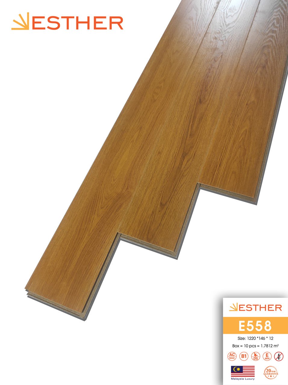 Sàn gỗ Esther với công nghệ độc quyền Malaysia đem lại sản phẩm sàn gỗ cốt tốt, màu sắc đẹp, có khả năng chống chịu nước, mối mọt và bền màu với thời gian