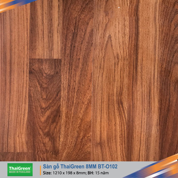 Sản phẩm sàn gỗ Thaigreen là sản phẩm nhập khẩu trực tiếp từ nhà máy của Thái Lan. Với ưu điểm là sản phẩm có cốt gỗ tốt bề mặt sần, sản phẩm sàn gỗ Thaistar đã chiếm lĩnh thị trường sản gỗ từ lâu và tạo được thương hiệu tốt. Hiện tại, sàn gỗ Thaigreen với 2 dòng sản phẩm chính là 8ly và 12 ly với thông số như sau