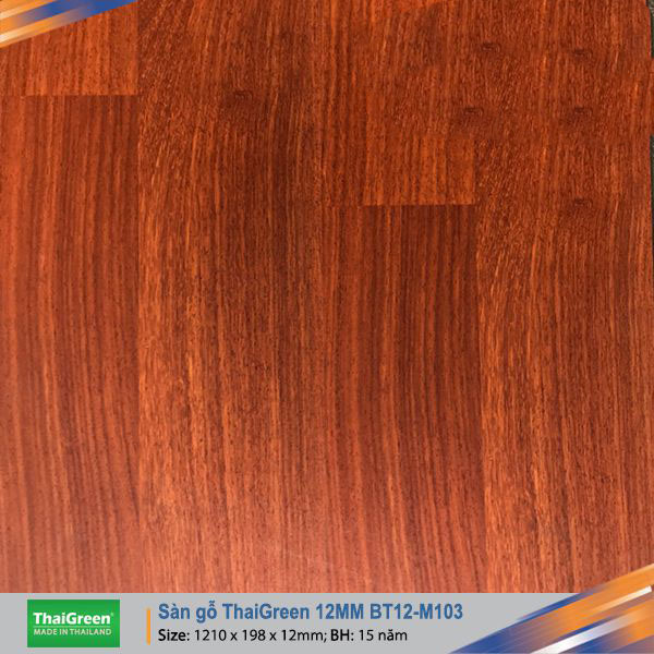 Sản phẩm sàn gỗ Thaigreen là sản phẩm nhập khẩu trực tiếp từ nhà máy của Thái Lan. Với ưu điểm là sản phẩm có cốt gỗ tốt bề mặt sần, sản phẩm sàn gỗ Thaistar đã chiếm lĩnh thị trường sản gỗ từ lâu và tạo được thương hiệu tốt. Hiện tại, sàn gỗ Thaigreen với 2 dòng sản phẩm chính là 8ly và 12 ly với thông số như sau