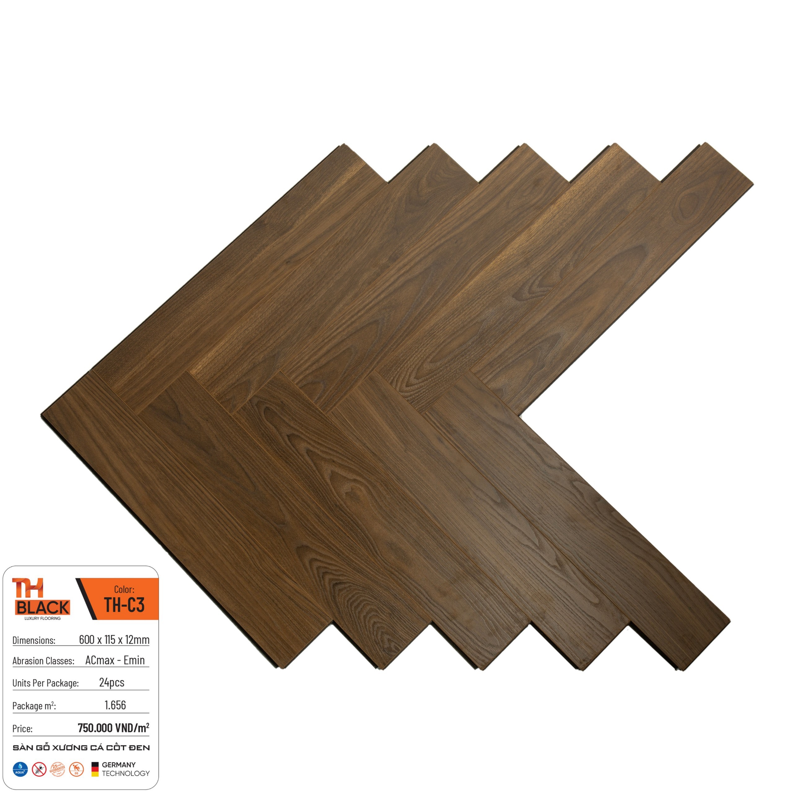 Sàn gỗ xương cá TH black là sản phẩm sàn gỗ chất lượng từ Đức với cốt gỗ siêu chịu nước đem đến cho bạn cảm giác yên tâm nhất cho sàn nhà. Sản phẩm sàn gỗ TH được phân phối rộng dãi khắp cả nước và ủy quyền cho sàn đẹp Hà Nội phân phối